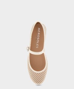 Aerosoles Comfortable Women’s Mary Jane Flats In Crystal/eggnog Mesh Fabric | Crystal & Eggnog Mesh Fabric | Women’s Shoes
